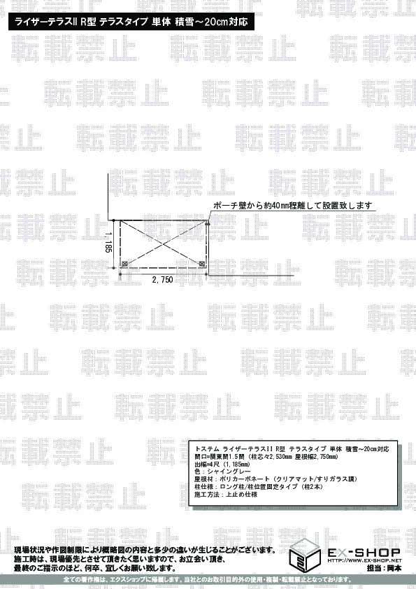 | サイズ | 屋根幅 2,750mm 出幅 1,185mm |