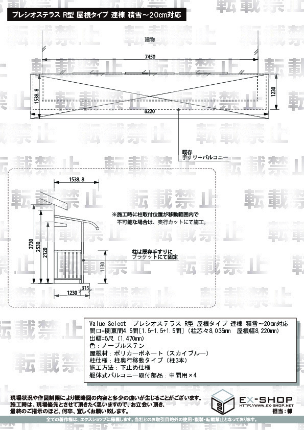 サイズ | 屋根幅 8,220mm 出幅 1,470mm |