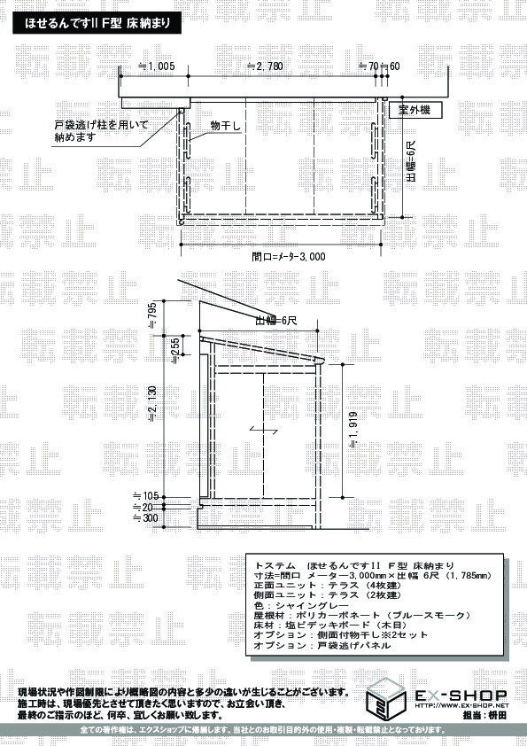 | サイズ | 間口 3,000mm 出幅 1,785mm |