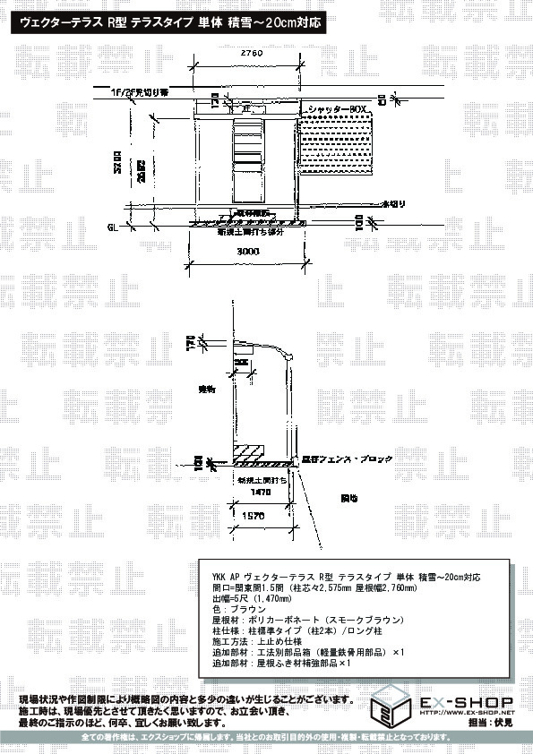 サイズ | 屋根幅 2,760mm 出幅 1,470mm |