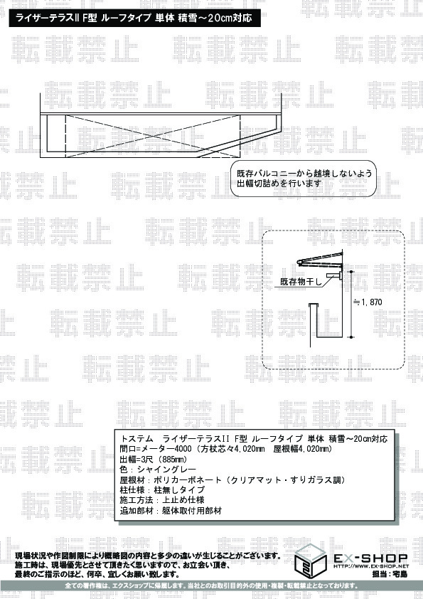 | サイズ | 屋根幅 4,020mm 出幅 885mm |