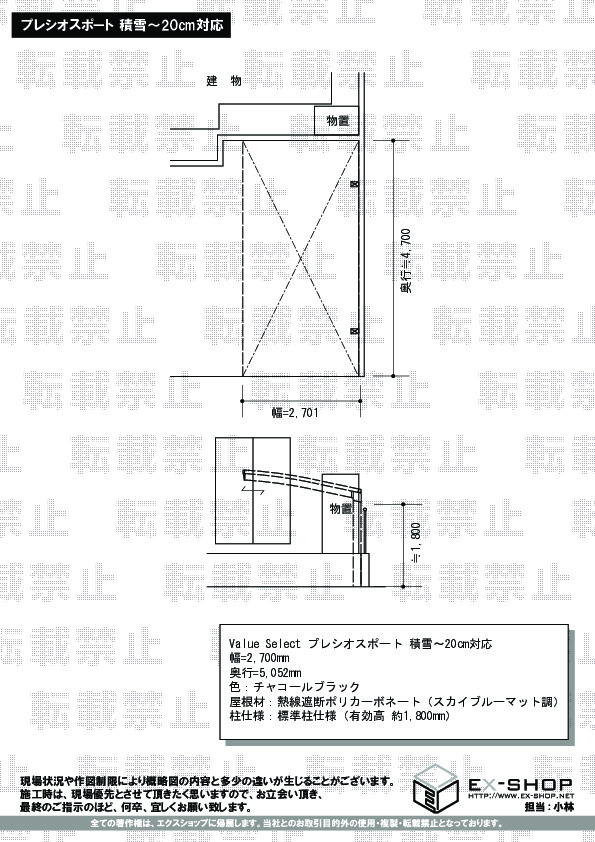 | サイズ | 幅 2,700mm 奥行 5,0m52mmm |