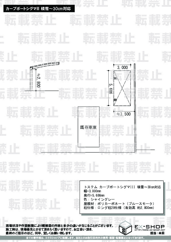 | 屋根高等 | ロング柱28仕様(有効高 約2,800mm) |