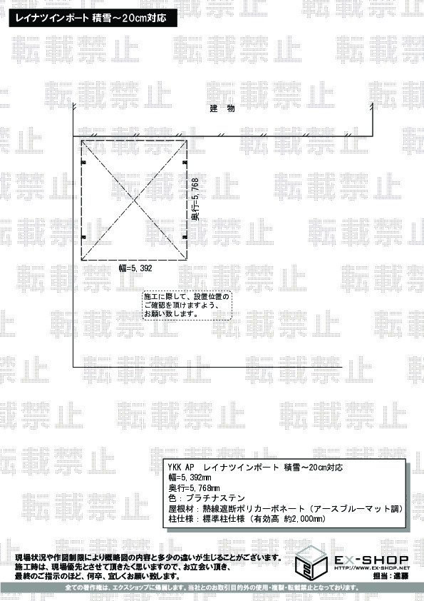 | 屋根高等 | 標準柱仕様(有効高 約2,000mm) |