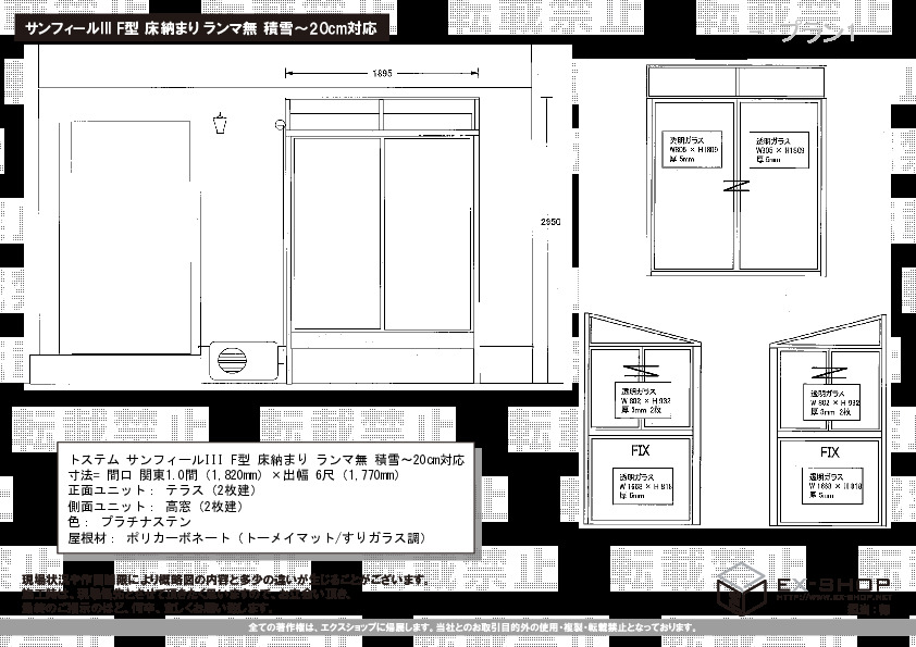| 屋根材 | ポリカーボネート(トーメイマット/すりガラス調) |
