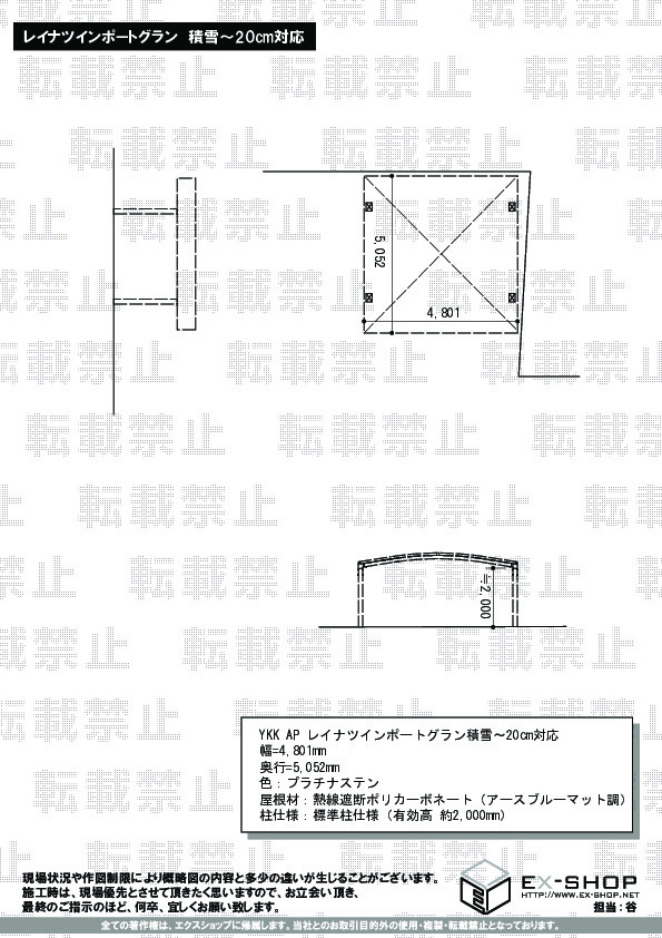 屋根高等 | 標準柱仕様(有効高 約2,000mm) |
