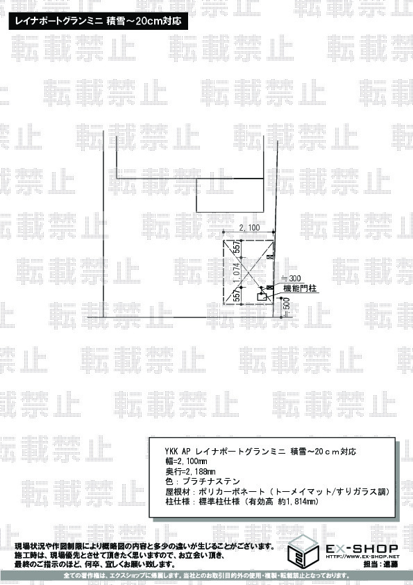 | 屋根材等 | ポリカーボネート(トーメイマット/すりガラス調) |