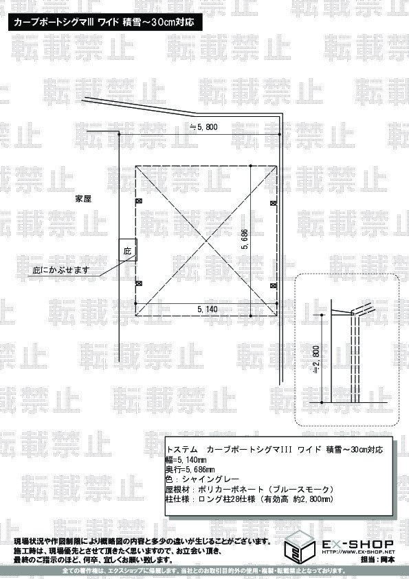 屋根高等 | ロング柱28仕様(有効高 約2,800mm) |