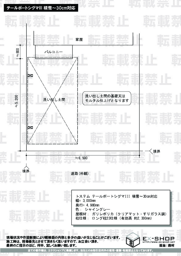 | サイズ | 幅 3,000mm 奥行 4,980mm |