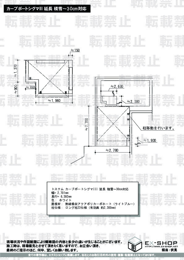 | サイズ | 幅 2,701mm 奥行 6,392mm |