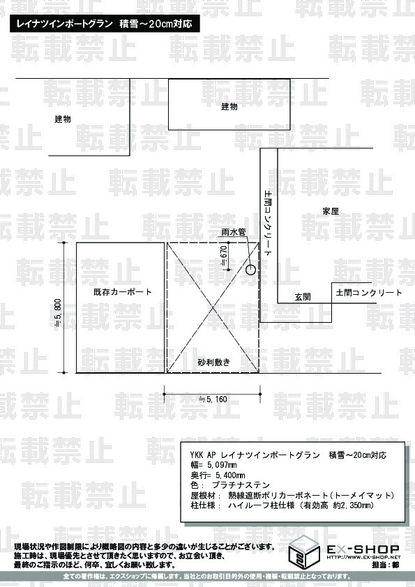 この度は、レイナツインポートグランの施工をご依頼頂きまして、誠に有り難うございます。ご自宅の駐車スペースをすっぽりと覆います大型のカーポートでございますが、熱線遮断ポリカーボネート(トーメイマット)の屋根材が光を通し、明るく、圧迫感の無いお仕上がりでございますね。担当致します施工士も弊社スタッフも、常にお客様に満足して頂くことを第一に考えておりますので、このようなお褒めのお言葉を頂き、これからの励みになります。今後も変わらず、お客様のご満足の為に精進して参りたいと存じますので、また何かございましたら、お気軽にエクスショップまでご連絡くださいますよう宜しくお願い致します。