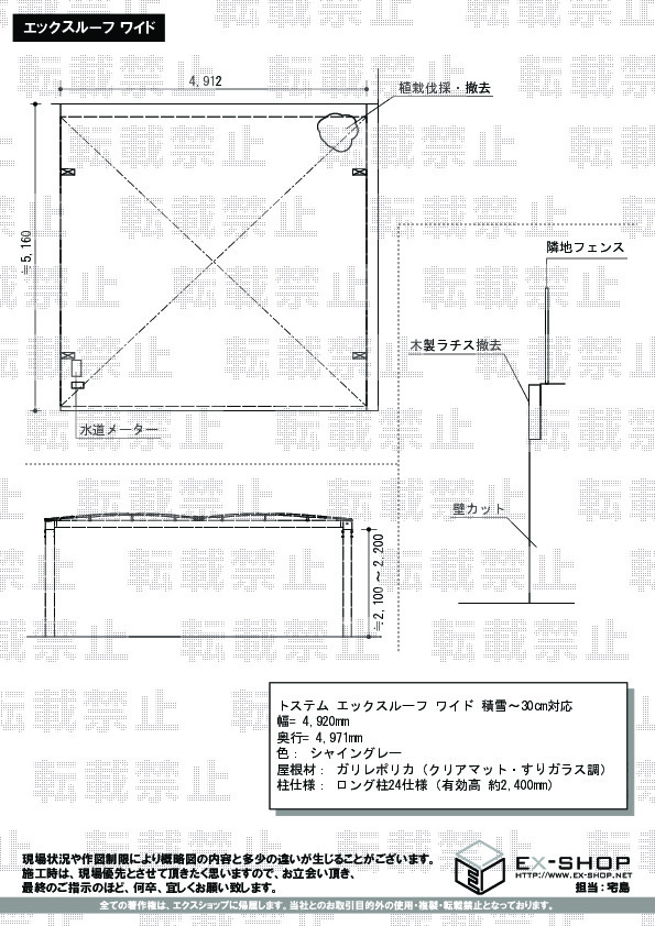 屋根高等 | ロング柱24仕様(有効高 約2,400mm) |