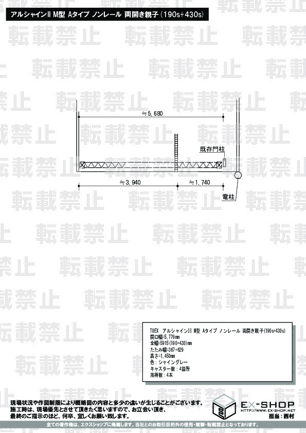 カラー:ブロンズ 規格幅:4180 (mm) 規格高:1150 (mm)