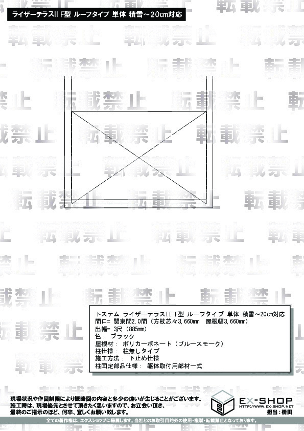 | サイズ | 屋根幅 3,660mm 出幅 885mm |
