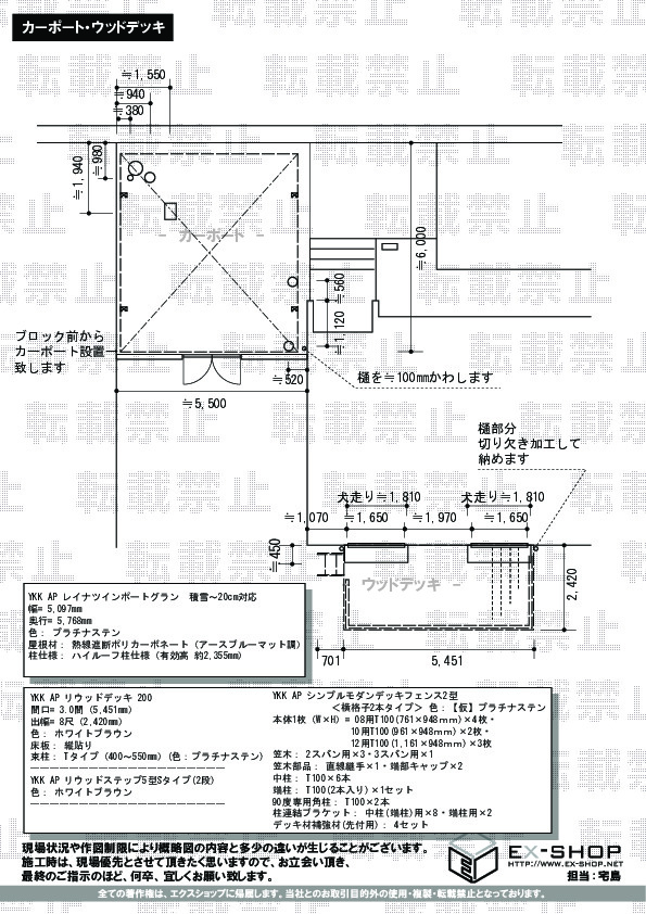 この度は、エクスショップをご利用頂きまして、誠に有り難うございます。レイナポートグランの熱線遮断ポリカーボネートの屋根が、広々としていて、大切なお車にも優しいお仕上がりでございますね。温もりの感じられるリウッドが完成し、ご家族皆様の憩いの場としてご活用頂けるものと存じます。今後は、見積作成のスピードの面でもご期待に応えることが出来ますよう、企業努力を重ねて参りたいと存じます。また機会がございましたら、是非エクスショップにご用命くださいますよう、宜しくお願い致します。