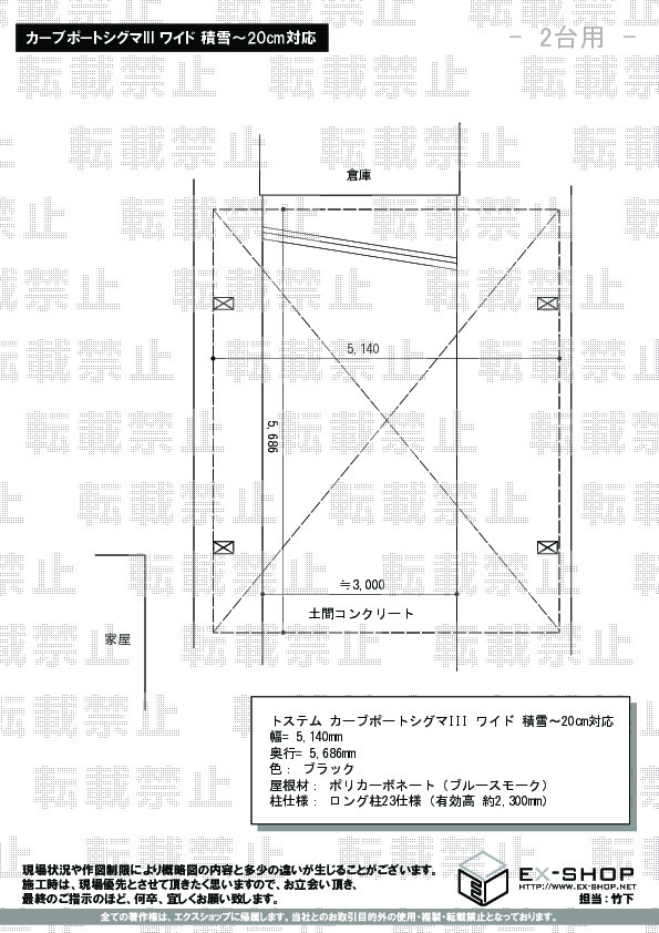 屋根高等 | ロング柱23仕様(有効高 約2,300mm) |