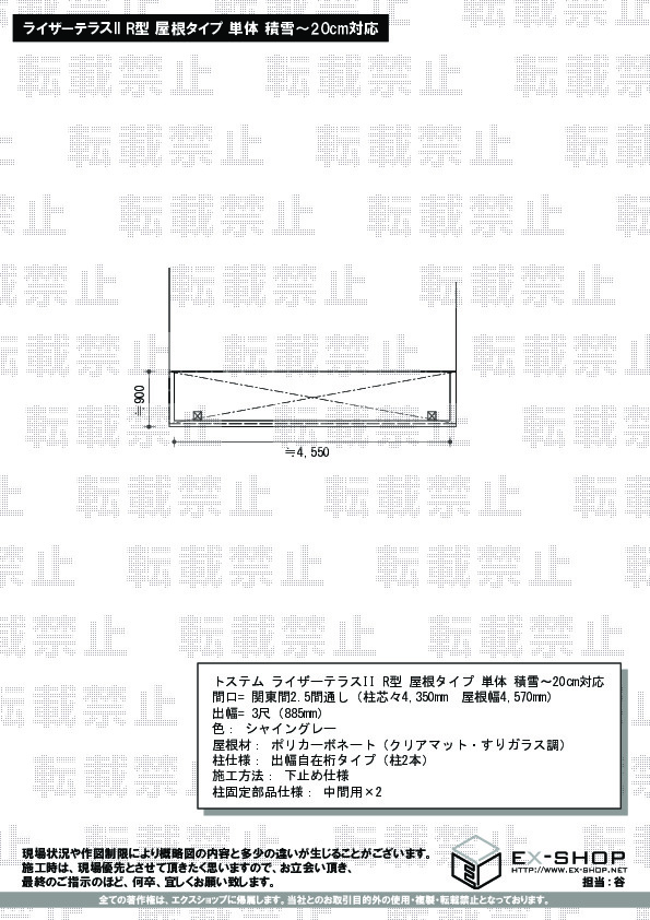 サイズ | 屋根幅 4,570mm 出幅 885mm |