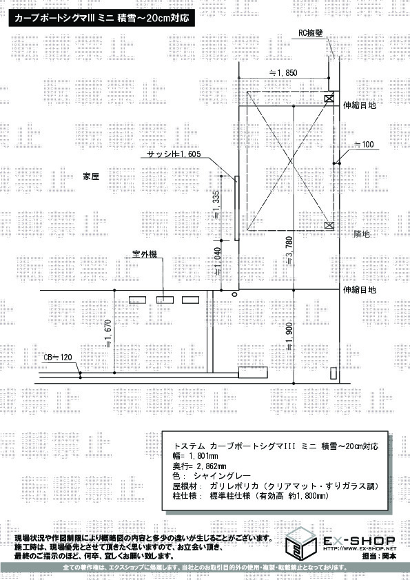 | 屋根高等 | 標準柱仕様(有効高 約1,800mm) |