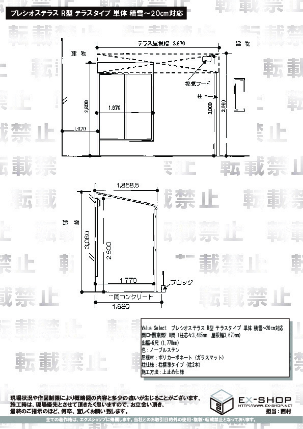 サイズ | 屋根幅 3,670mm 出幅 1,770mm |
