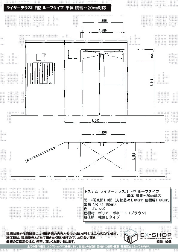 | サイズ | 屋根幅 1,840mm 出幅 1,185mm |
