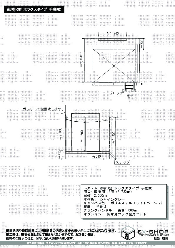 サイズ | 間口 2,730mm 出幅 |