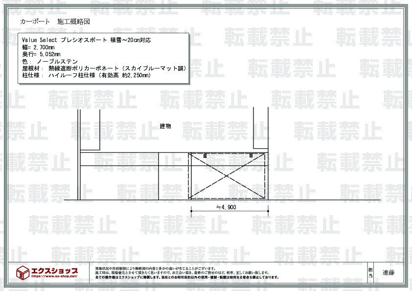 この度は、プレシオスポートの施工ご依頼を頂き誠に有り難うございます。施工士の協力の元、お客様のご希望をしっかりとお伺いし、ご満足頂けるお仕上がりとなりましたこと、私どもも大変嬉しく存じます。カーポートの設置により、お悩みの問題も解決し、快適にご利用頂けるものと存じます。今後も、お客様にご満足頂ける様、日々精進して参りますので、また機会がございましたら是非エクスショップをご利用下さいますよう、宜しくお願い致します。