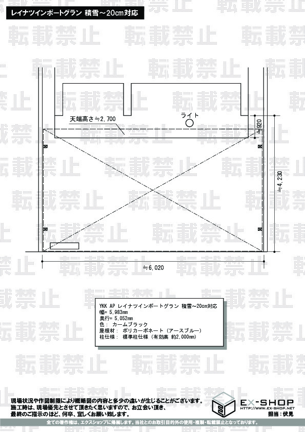 屋根高等 | 標準柱仕様(有効高 約2,000mm) |