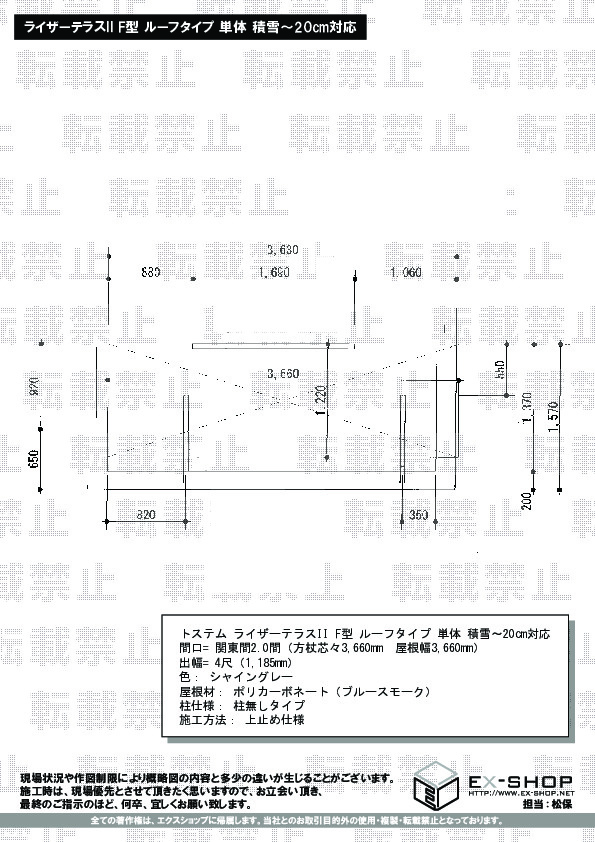 | サイズ | 屋根幅 3,660mm 出幅 1,185mm |