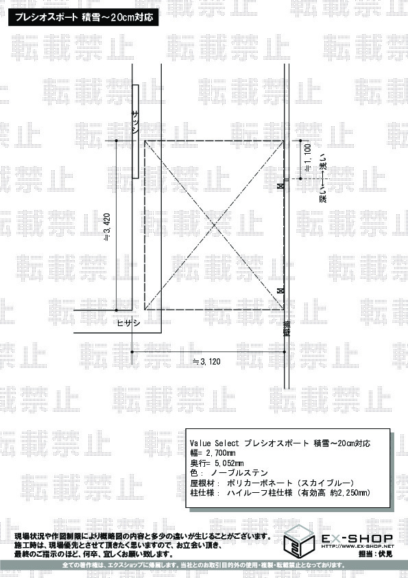 | 屋根材等 | ポリカーボネート(スカイブルー) |