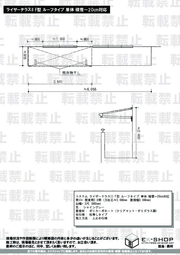 | サイズ | 屋根幅 3,660mm 出幅 885mm |