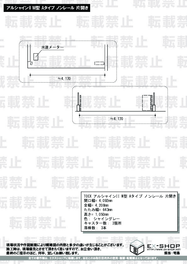 カラー:ブロンズ 規格幅:4180 (mm) 規格高:1150 (mm)