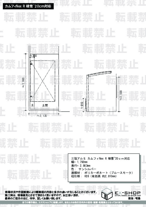 | 屋根材等 | ポリカーボネート(ブルースモーク) |