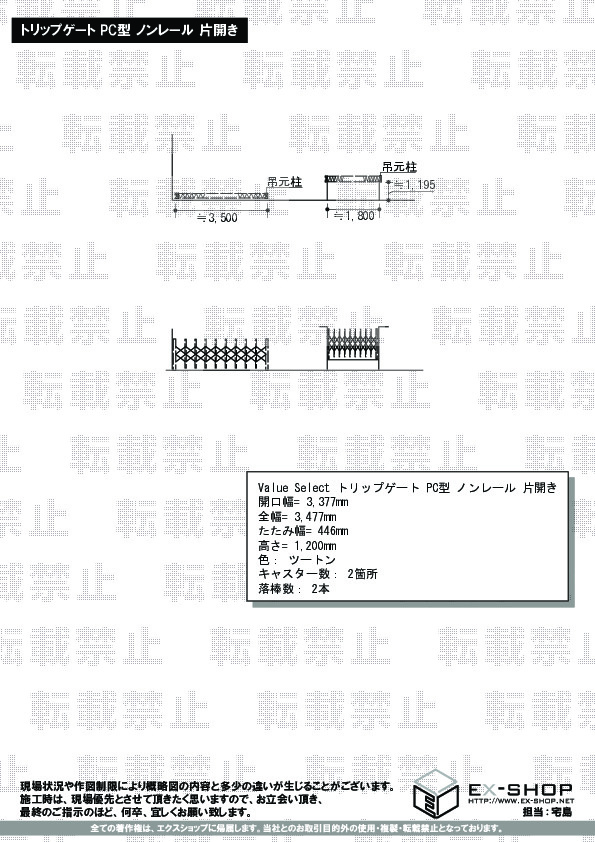 この度は、トリップゲート PC型の施工をご依頼頂きまして、誠に有り難うございます。顔のみえないネット販売にはご不安がおありだったかと存じますが、弊社を信頼して、施工までお任せ頂いたことを誠に嬉しく存じます。トリップゲート シリーズはお手頃な価格でございますが、カーゲートの一流メーカーと共同で開発した商品でございますので、機能性・耐久性に十分ご満足頂けるものと存じます。これからも、快適なお住まいづくりのパートナーとして、エクスショップをご利用頂けますよう、宜しくお願い致します。またのご利用を、心よりお待ち申し上げております。