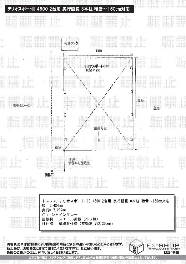 屋根高等 | 標準柱仕様(有効高 約2,300mm) |
