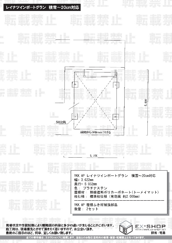 屋根高等 | 標準柱仕様(有効高 約2,000mm) |