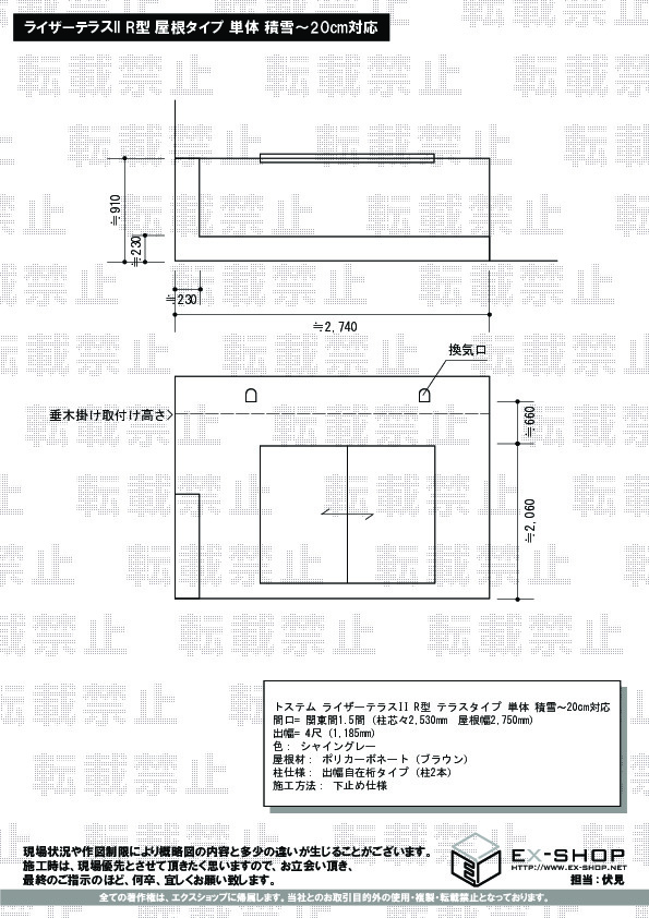 | サイズ | 屋根幅 2,750mm 出幅 1,185mm |
