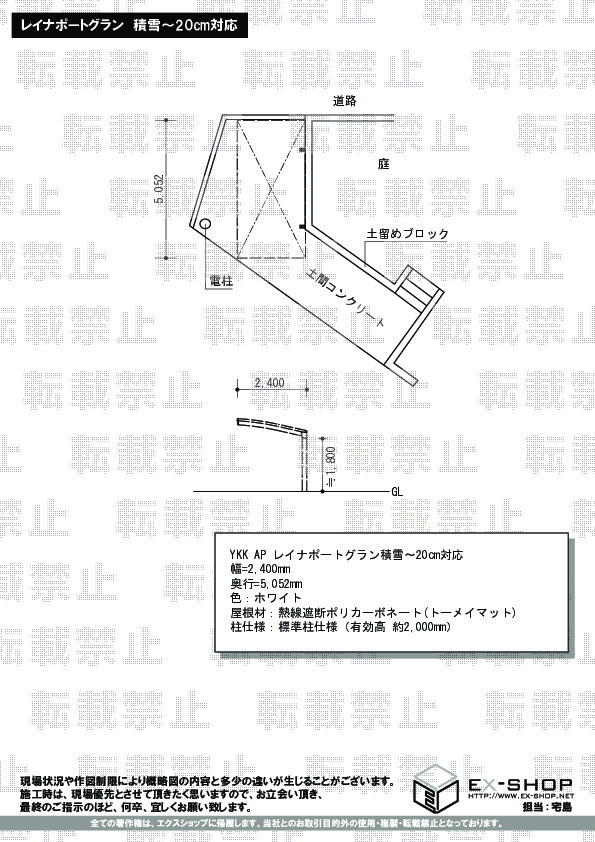 | 屋根高等 | 標準柱仕様(有効高 約2,000mm) |