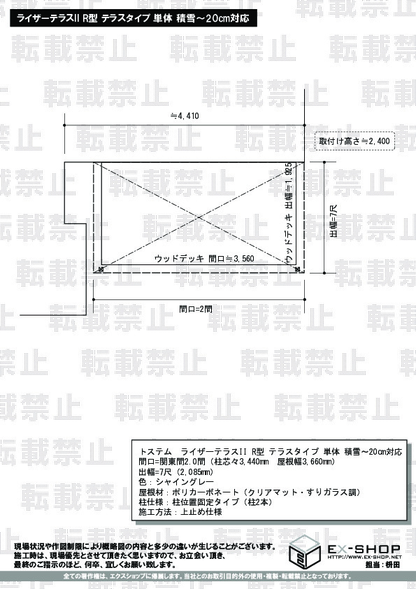 | サイズ | 屋根幅 3,660mm 出幅 2,085mm |