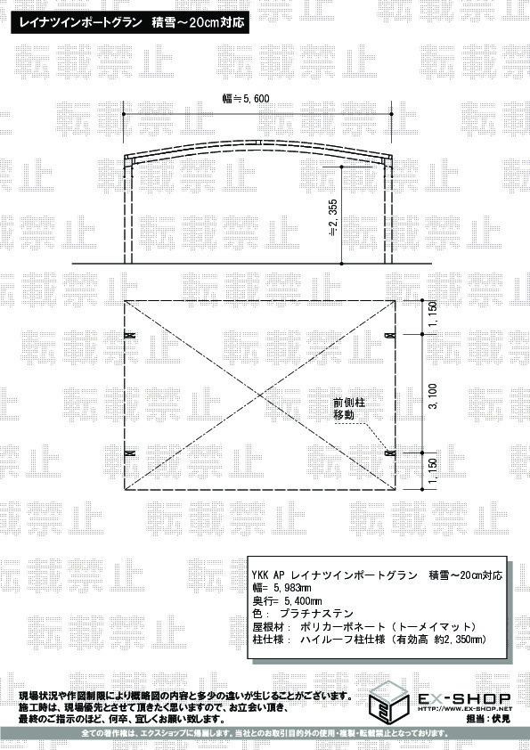 この度は、エクスショップをご利用頂きまして、誠に有り難うございます。アーチ状のレイナツインポートグランが、大切なお車を包み込み、安心感のあるお仕上がりでございますね。日程調整でお時間を頂戴してしまい、申し訳ございませんでした。今後は、お客様に100%満足頂けるよう、迅速にそしてこまめな連絡を心掛けて参りたいと存じます。また機会がございましたら、弊社をご用命頂ければ、幸いでございます。