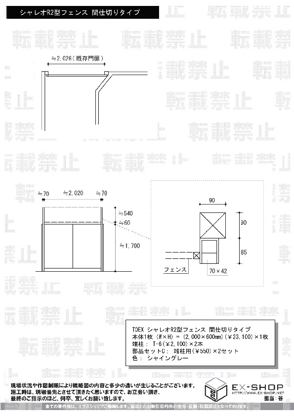 この度はシャレオR2型フェンスの施工をご依頼頂きまして、誠に有り難うございます。インターネットでのご注文は顔の見えないお取引となりますので、ご不安もあったかと思いますが、弊社を信頼して頂き施工までお任せ頂きましたこと、大変光栄でございます。目隠し効果のあるシャレオR2型フェンスで、お客様の生活がより良いものになりますこと、心より祈っております。また是非機会がございましたらエクスショップをご利用下さい。またのご利用心よりお待ちしております。