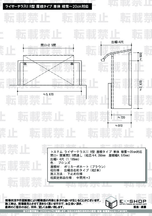 サイズ | 屋根幅 4,570mm 出幅 1,185mm |
