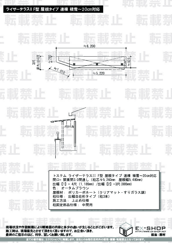 | サイズ | 屋根幅 5,480mm 出幅 1,185mm |