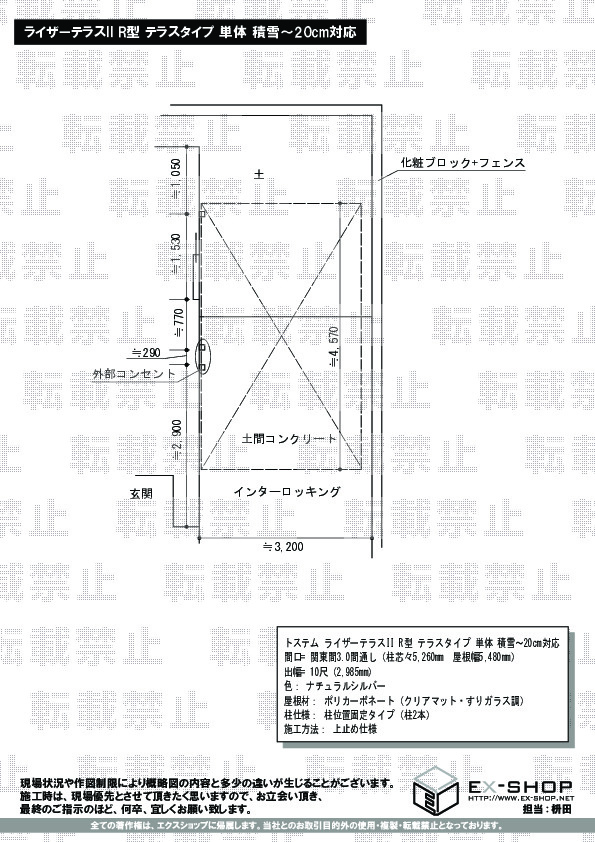 サイズ | 屋根幅 5,480mm 出幅 2,985mm |