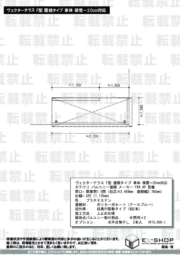| サイズ | 屋根幅 2,760mm 出幅 1,170mm |