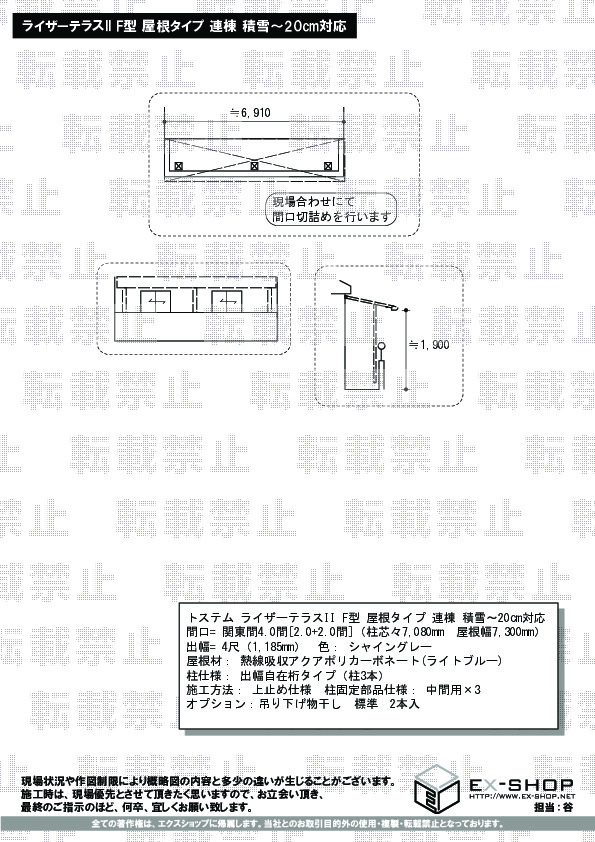 サイズ | 屋根幅 7,300mm 出幅 1,185mm |