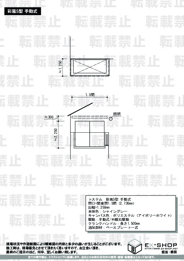 サイズ | 間口 2,730mm 出幅 1,250mm |