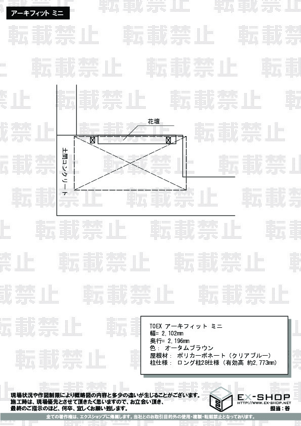 | 屋根材等 | ポリカーボネート(クリアブルー) |