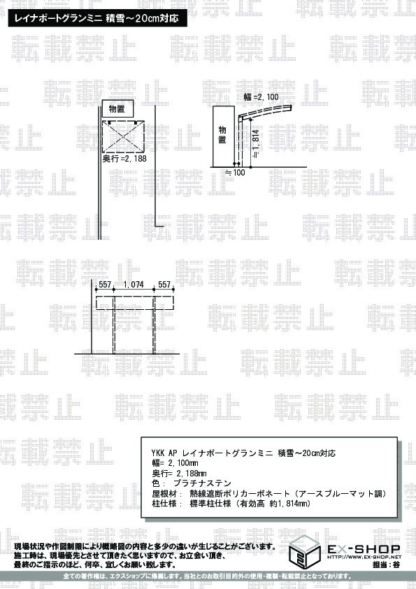 | 屋根高等 | 標準柱仕様(有効高 約1,814mm) |