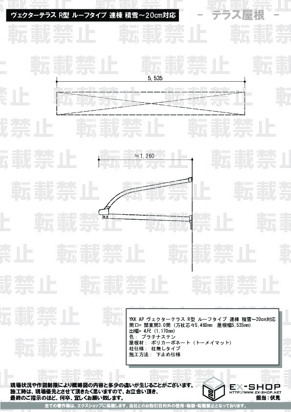 | サイズ | 屋根幅 5,535mm 出幅 1,170mm |