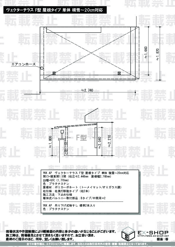 | サイズ | 屋根幅 2,760mm 出幅 1,770mm |